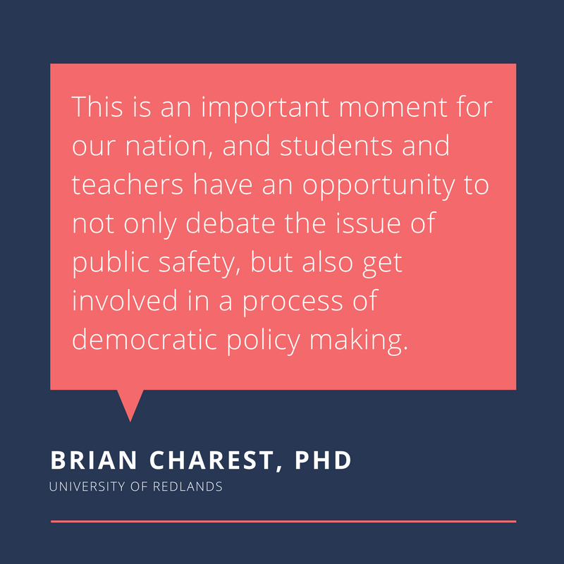 This is an important moment for our nation, and students and teachers have an opportunity to not only debate the issue of public safety, but also get involved in a process of democratic policy making. Doing so would not only encourage teachers to teach about the power of civic engagement, but also provide an opportunity for students to see firsthand the importance of civic action in a democracy.
