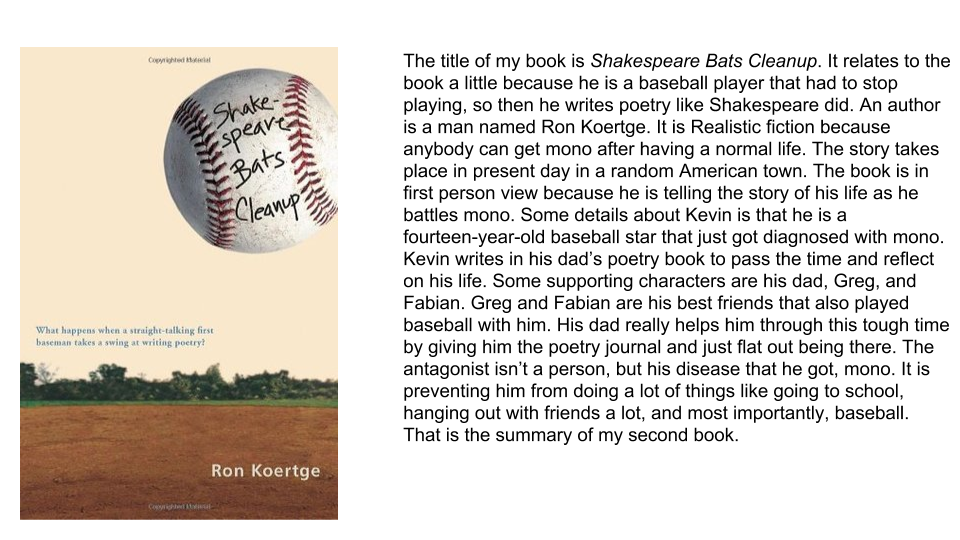 This school year, I decided we would uncover just what is a verse novel and how reading a verse novel compares to reading prose and poetry. I did not want to do too much analysis during the reading experience, so students read two or more verse novels during class time and alongside our poetry reading and writing, and when they were done, I asked them to write a little bit about the books for you and a lot about what makes a “good” verse novel as our culminating literary essay (to demonstrate summary, claim, evidence, reasoning, organization, conventions, etc.).