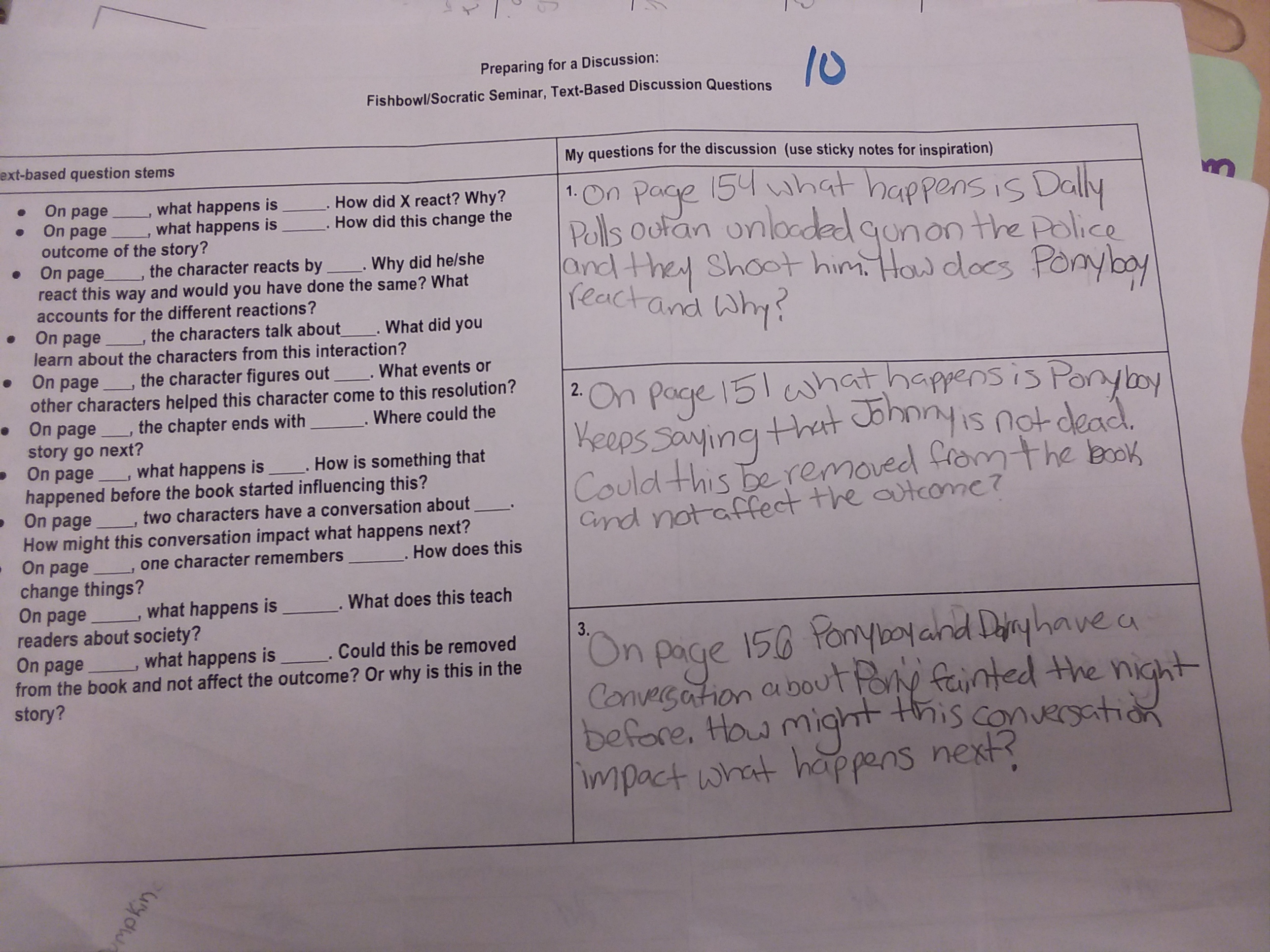 When we were ready to move into our shared text, The Outsiders, I knew students had a good foundation for discussion and now just had to add the text-based questions and responses, which we couldn’t really do when everyone was reading a different book.
